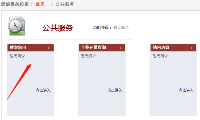 1. 申请人在“翱翔门户”点击“教务系统”,选择“公共服务”功能模块,选择“教室借用”,点击“教室申请”,根据系统提示填写《教室借用申请表》。如图1至图3所示。
