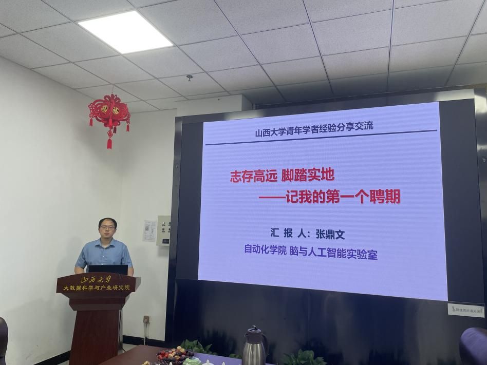 在山西大学大数据科学与产业研究院调研交流时,该研究院负责人钱宇华教授对学院一行来访表示欢迎,详细介绍了参加此次调研交流活动的专家教授。韩军伟院长对山西大学大数据科学与产业研究院的热情接待表示感谢,并围绕历史沿革、组织机构、师资队伍、人才培养、科学研究、国际合作、党建工作等方面,系统介绍了学院发展历程及概况。张鼎文教授作青年学者经验分享报告,主要从学术进阶、技术转化、扩大影响三方面分阶段分享了自身经历及心得体会。交流研讨阶段,双方围绕学术研究、科研平台、个人发展、团队建设等方面进行了深入地探讨与交流,表示具有较好的合作基础,未来可以在多个领域加强沟通交流、深入开展院校间的合作。