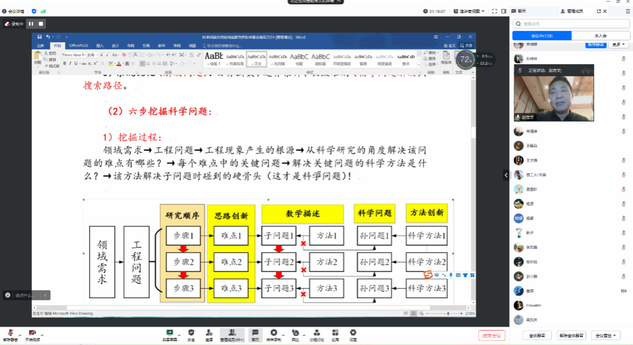 赵吉文教授围绕研究对象、需要解决的问题以及解决问题的方法三个要素的内涵,采用六步法梳理了工程问题到科学问题的逻辑链条,为与会教师形成国家自然科学基金申请书的撰写思路。赵吉文教授深入讲述了三个方面的要点,一是要详细剖析两类研究对象的三个属性,帮助申请人准确锁定研究对象;二是要正确聚焦问题凝练,避免焦点上移和焦点下移,并分析各自特征;三是要采用六步分析法,实现从工程问题到科学问题的挖掘;四是要给出题目、摘要、研究内容、科学问题和创新点的撰写规范。