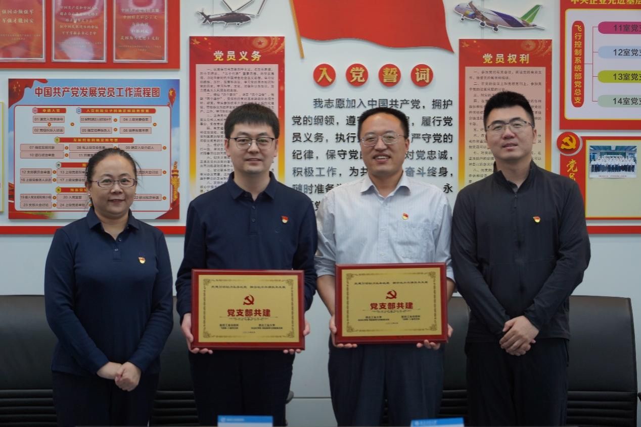 共建交流环节,李广文和臧希恒签署了支部共建协议书,管峻和吴雪梅分别向双方支部书记授支部共建牌,共建内容明确包含以面向技术创新需求、共创一项活动,聚焦飞控导航专业发展态势、共破一个难题,聚焦党的二十大精神学习、共上一堂党课。导航制导与控制系向12室党支部赠送了支部教师近年来撰写的学术专著,12室党支部回赠了飞控和导航专业书籍。