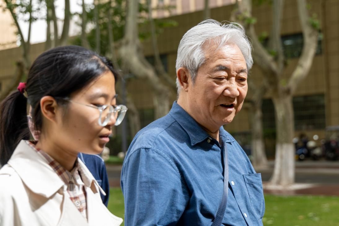 芳草新绿,微风和煦。谢老师和同学们一起漫步在校园林荫大道,深情讲述了自动控制系的成立及发展概况,并在诚字楼、公字楼等学院办公旧址前回顾了老一辈自动化人深耕一线,从事教学科研的过往经历。