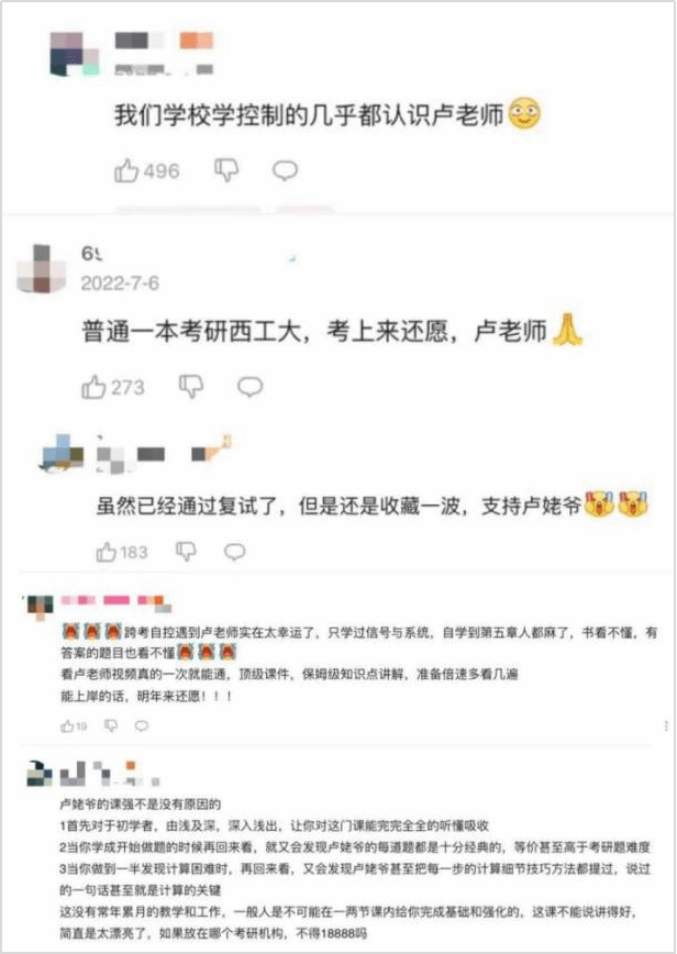 桃李不言,下自成蹊。在众多学子心目中,卢老师早已是男神般的存在,甚至被大家亲切称呼为“卢姥爷”。在他的视频课评论区,很多外校的同学都不约而同地惊呼:“每次听卢老师的课,总有一种想考漫画h