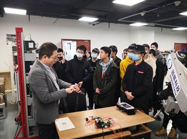 我院师生在固高科技公司西安分公司王欢总经理的带领下,先后参观了分公司文化长廊、研发部、实验室等部门以及固高科技“1+X”运动控制系统技能培训基地。王欢总经理详细介绍了固高成立十余年来在运动控制等领域所取得的丰硕成绩以及在人才培养、企业孵化方面的创新模式。固高工程师详细介绍了固高科技“1+X”运动控制系统培训平台硬件的各部分功能,并进行演示。