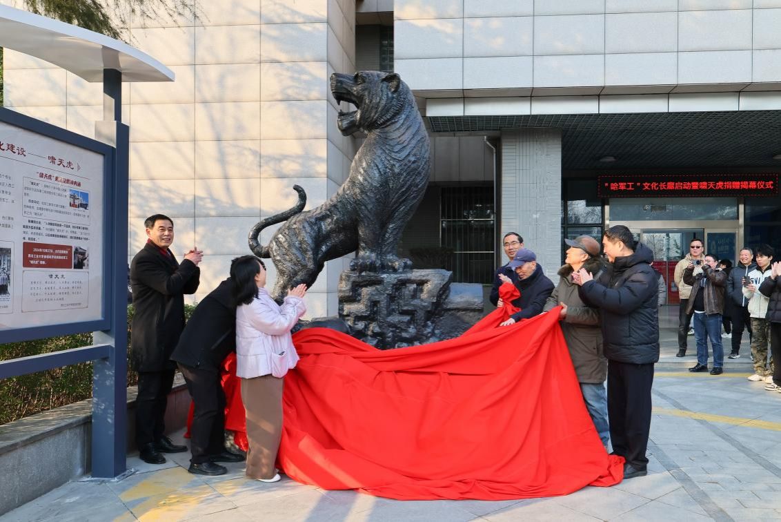 在留校以后,张晓斌老师立足校史、院史深厚底蕴,深挖红色文化资源,围绕“哈军工”优良传统的传承与弘扬,为学院文化建设发展提出了建设性意见建议。在他的积极推动下,学院成立哈军工文化建设工作专班,顺利落成“哈军工”历史文化长廊,并联络院友所在实验室促成了哈军工屋脊吻兽“啸天虎”铜像的捐赠,成功举办哈军工文化历史长廊启动仪式暨“啸天虎”铜像捐赠揭幕仪式,还邀请了校领导以及哈军工老学员宛良信、何长安等学院老一辈教师参与仪式。当前,“啸天虎”已成为学院标志性文化品牌,涵育着师生形成传承“哈军工”优良传统的精神自觉。