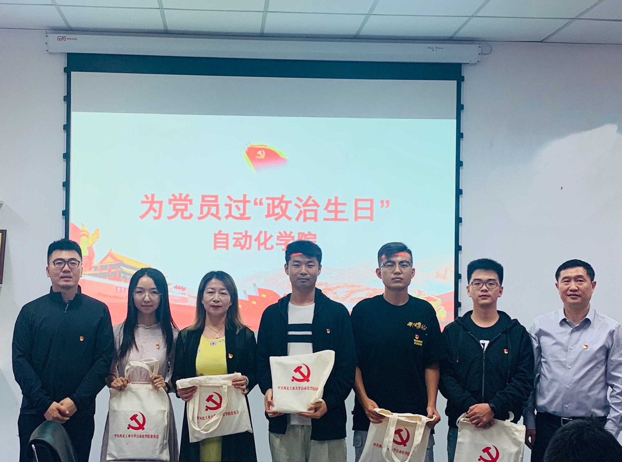 会议第一阶段,韩军伟为师生党员送上祝福并提出三点要求;党员代表魏爱玉结合入党经历及工作实际发表政治生日感言,在其倡议及领誓下,与会人员举起右拳,重温入党誓词。詹浩和学院领导共同为师生党员赠送“政治生日”学习包并与大家合影留念。