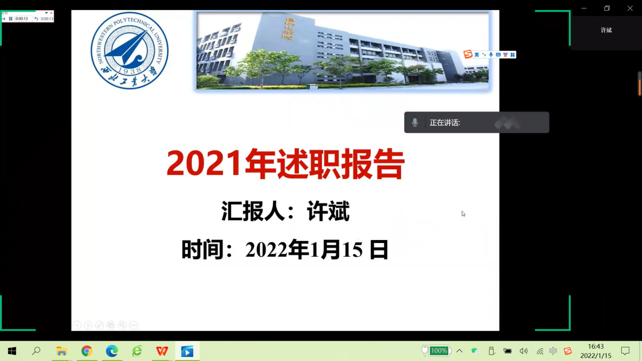 于1月15日线上召开2021年度五、六级领导人员述职考核大会。学院领导班子成员及全体教职工180余人参加。会议由学院党委书记韩军伟同志主持。