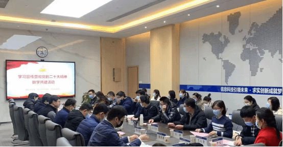 与学校国际合作处、电子信息学院在电子信息学院119会议室开展党的二十大精神联学共建活动。国际合作处处长张富利应邀作党的二十大精神宣讲。国际合作处党支部成员、电子信息学院党委理论学习中心组成员、漫画h