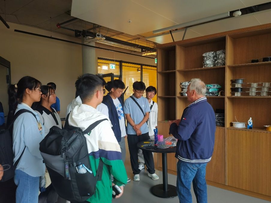 随后,一行人前往位于柏林的阿德勒斯霍夫科技园区,该园区是德国最大的城市科技园之一,汇聚了超过1000家高科技企业与研究机构。在园区讲解员的引导下,同学们了解了该园区在人工智能、新材料等领域的研究成果,并与入驻企业工程师进行技术交流,切实感受到产学研协同的巨大动能。
