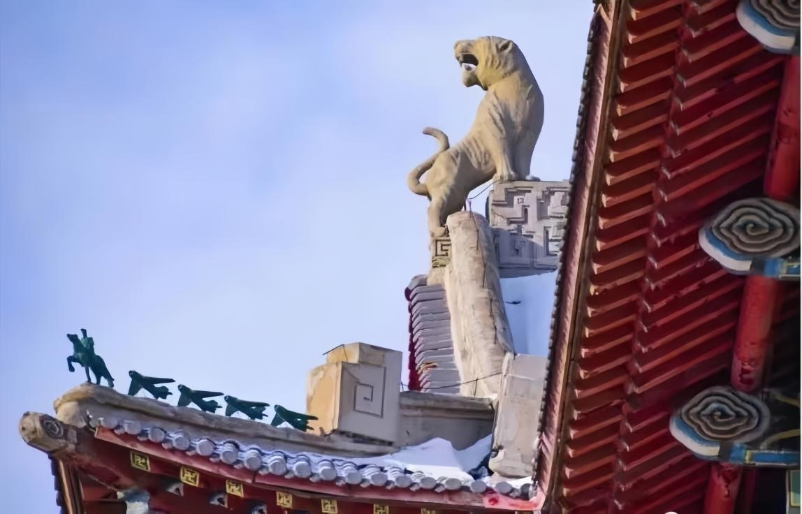 “啸天虎”原物位于“哈军工”空军工程系大楼屋脊,因有啸天之势,被称之为“啸天虎”。时任“哈军工”院长陈赓曾讲到:“人民解放军就是一只猛虎,创办军事工程学院,就是为猛虎添翼”,当他看到“啸天虎”时,夸赞道:“这个设计非常好,老虎很威风。以后谁要是敢侵略咱们,咱们就要像这个老虎一样,咬回去。”