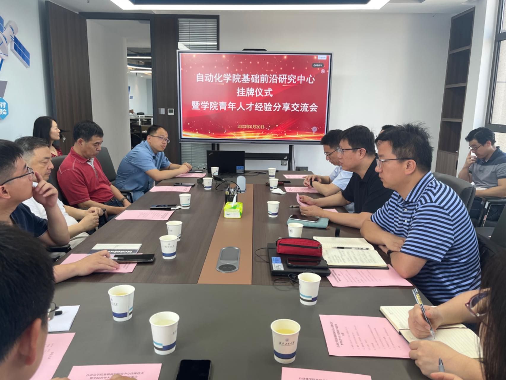 在友谊校区创新科技大楼举办学院基础前沿研究中心挂牌仪式暨青年人才经验分享交流会。学院领导班子成员、各团队负责人及青年教师代表参会。会议由院长韩军伟主持。
