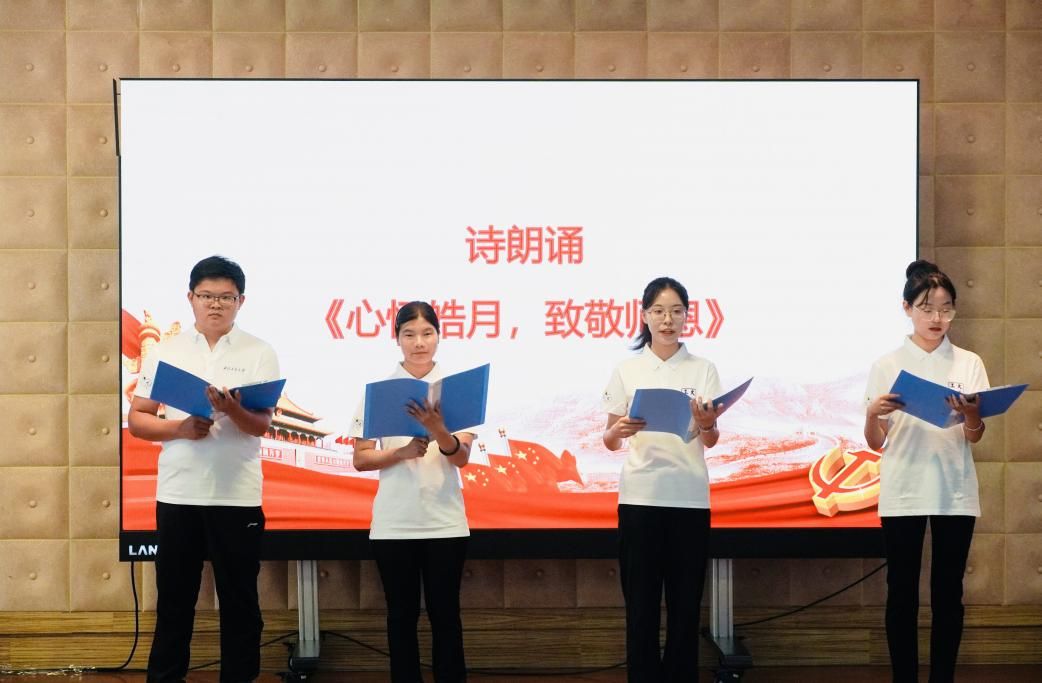 会议伊始,2023级新生代表为全体教师送上诗朗诵《心怀皓月,致敬师恩》。一声声饱含深情的问候,一句句充满感恩的惦念,拉开了表彰大会的帷幕。