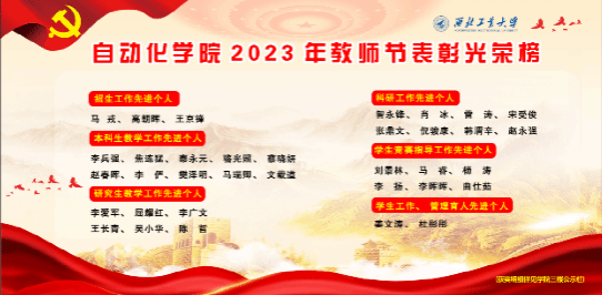 党委副书记(主持工作)李伟林宣读学院2023年教师节表彰决定。全院共35名优秀教师受到大会表彰,涵盖了招生、本科生培养、研究生培养、科研工作、学生竞赛指导、学生工作等人才培养全过程。