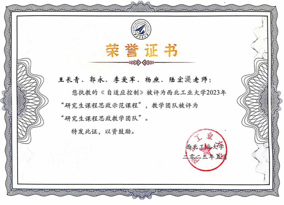 持续改进教学方法,积极推动课程思政建设。主讲本科生课程《系统辨识》,采用理论教学结合案例教学的方法和“以学生为中心,科研服务于教学”的理念,以课程为载体实现思想政治教育的协同,以人格魅力和学识风范教育感染学生,帮助和引导学生树立社会主义核心价值观,坚持将家国情怀引入课堂教学,激励学生在国防科研领域无私奉献,按照“基础理论-实践教学-实际应用”的线条构建课程体系,采取“以学生为中心”的教学理念,持续改进教学的课堂教学效果。该课程获得2020年漫画h