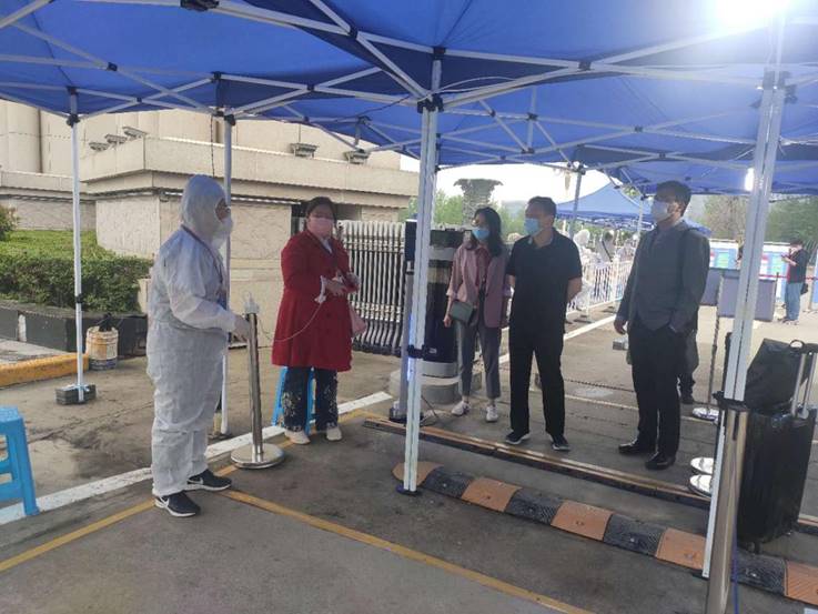 党委书记潘泉、副院长李爱军,党委副书记马玥带队看望了工作在返校接待一线的志愿者教师及首批返校学生。