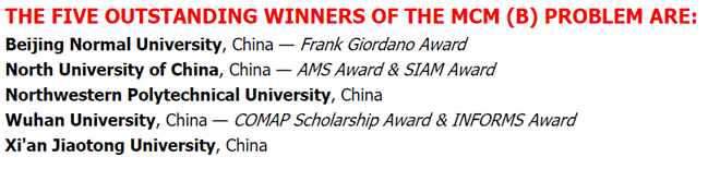 美国大学生数学建模竞赛由美国数学及应用联合会主办,是唯一的国际性数学建模竞赛,现已成为世界上影响范围最大的学科竞赛之一。由COMAP(the Consortium for Mathematics and Its Application,美国数学及其应用联合会)主办,得到了SIAM(工业和应用数学学会)、NSA(美国国家安全局)、INFORMS(运筹学和管理科学研究协会)等多个组织的大力支持。该项赛事始于1985年,至今已成功举办35届,每年都吸引着世界一流高校的优秀学生参与角逐,竞争尤为激烈。