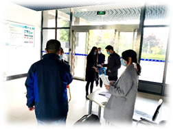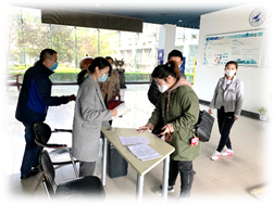 4月7日上午9:00,学院教师陆续抵达。受学院院长和书记委托,学院党委副书记李伟林、马玥,办公室主任高红等在学院大厅,协助工作人员进行教职工上岗前安全检查等各项工作。