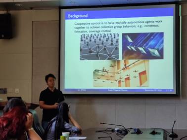 本次报告会,李忠奎教授主要介绍了在避免使用全局信息的情况下结合事件触发机制的协同控制问题,将自己近期在设计基于节点和基于边缘事件触发的完全分布式协同控制方案的研究成果向大家进行了详细的讲述。着重介绍了如何使用自适应控制方法设计出合适的分布式控制策略以及基于事件的触发条件。