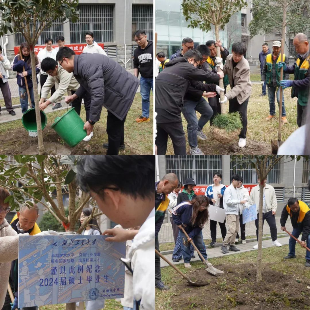 联合后勤集团举办了“桃李花开漫方舆,待桂成才桢干来”植树节·毕业季活动,学院党委副书记易正阳、后勤集团物业服务中心主任羽渊,2024届本科生和研究生代表、辅导员等参加了植树活动。