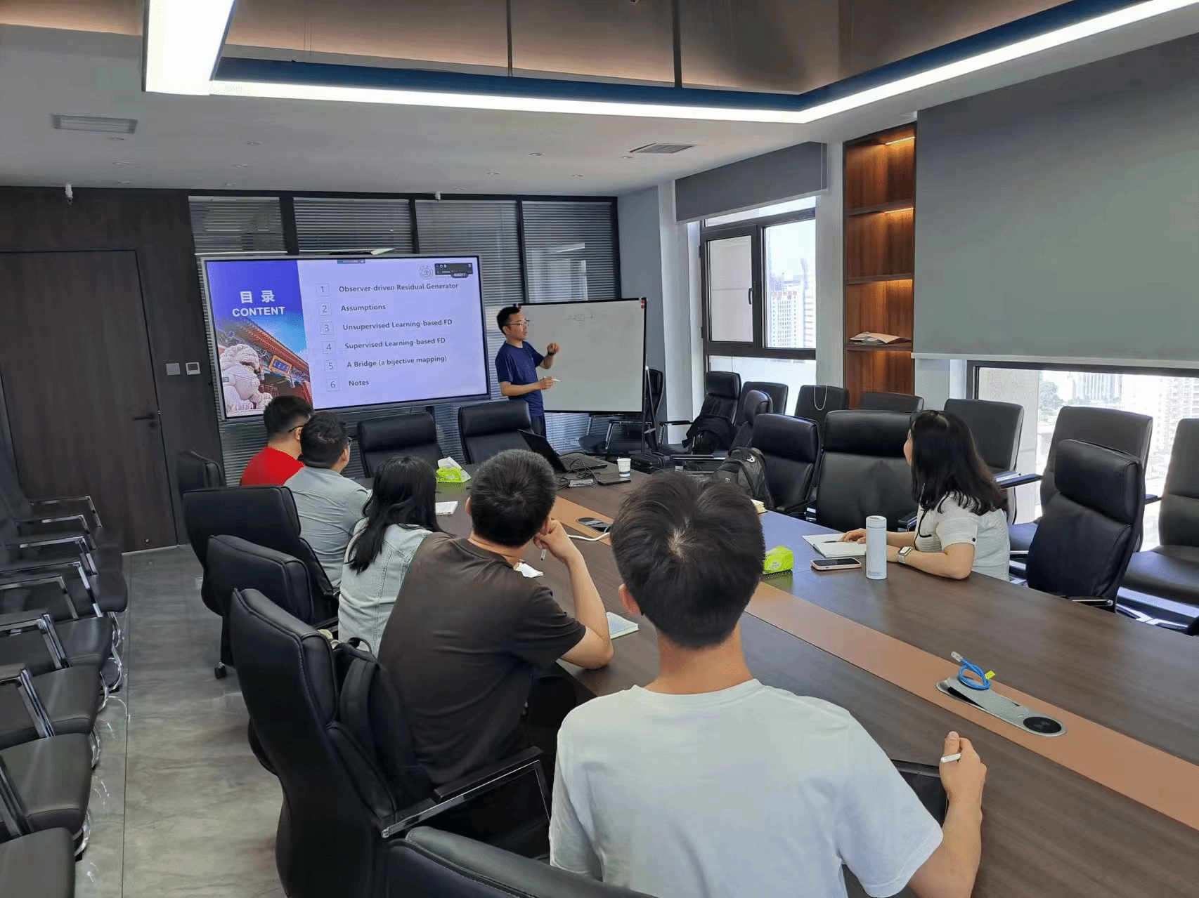 陈老师从观测器驱动的残差发生器、基于无监督学习的故障诊断、基于有监督学习的故障诊断、有监督学习的故障诊断、无监督学习的故障诊断之间的桥梁等方面介绍了可解释性数据驱动故障诊断最新发展以及实际应用情况。与会师生与陈老师热烈讨论、充分交流,参会师生纷纷表示,通过聆听陈老师的精彩报告和交流研讨,受益匪浅,对今后的学术研究有了更加清晰的认识和规划。