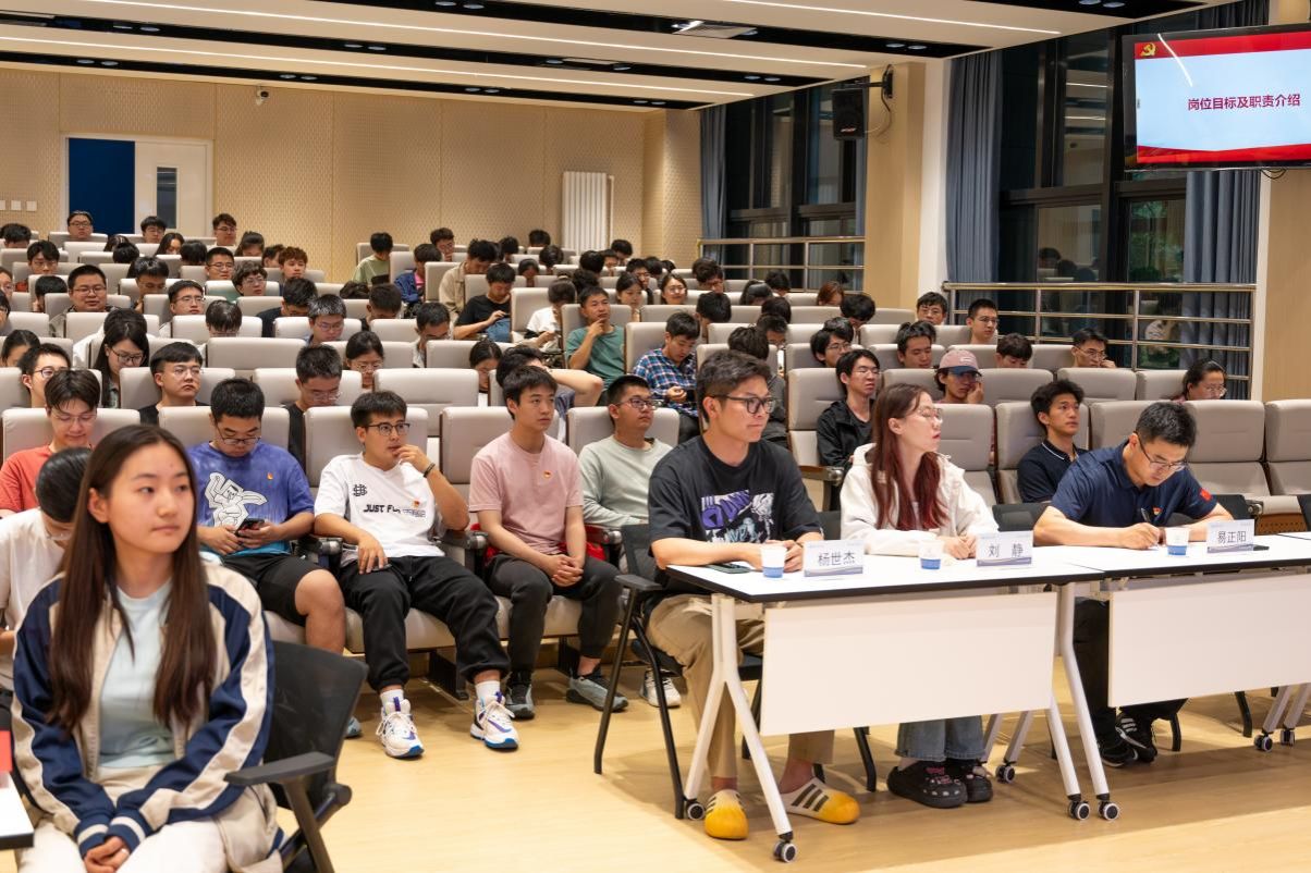 本次共选聘76名2021级学生党员担任“学风引航员”,对接相关宿舍开展多方位帮扶工作,易正阳为党员代表颁发聘书。