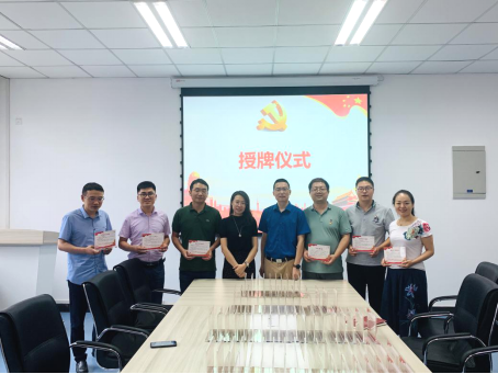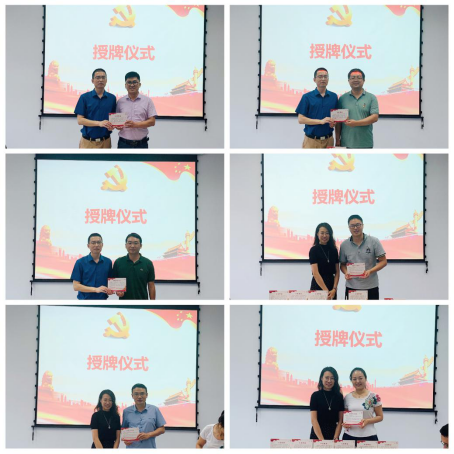 接下来,支部书记代表各支部党员参加桌牌授予仪式,马玥书记和李伟林书记分别为与会支部书记授牌,并亲切合影留念。