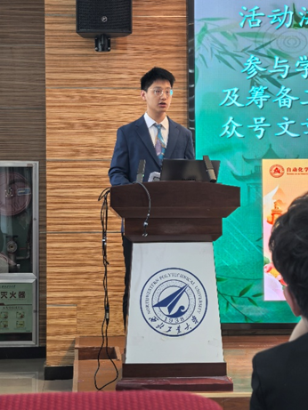 大会第一项,学院团委副书记王瑞祥进行工作汇报。他详细汇报了团委的工作进展和所取得的荣誉成果。他表示,在接下来的工作中,团委也将始终依靠学校“127”发展目标,推动志愿活动队伍建设,开展学业竞赛指导,完善管理流程机制,坚守初心,勇担使命,为学院发展贡献力量。