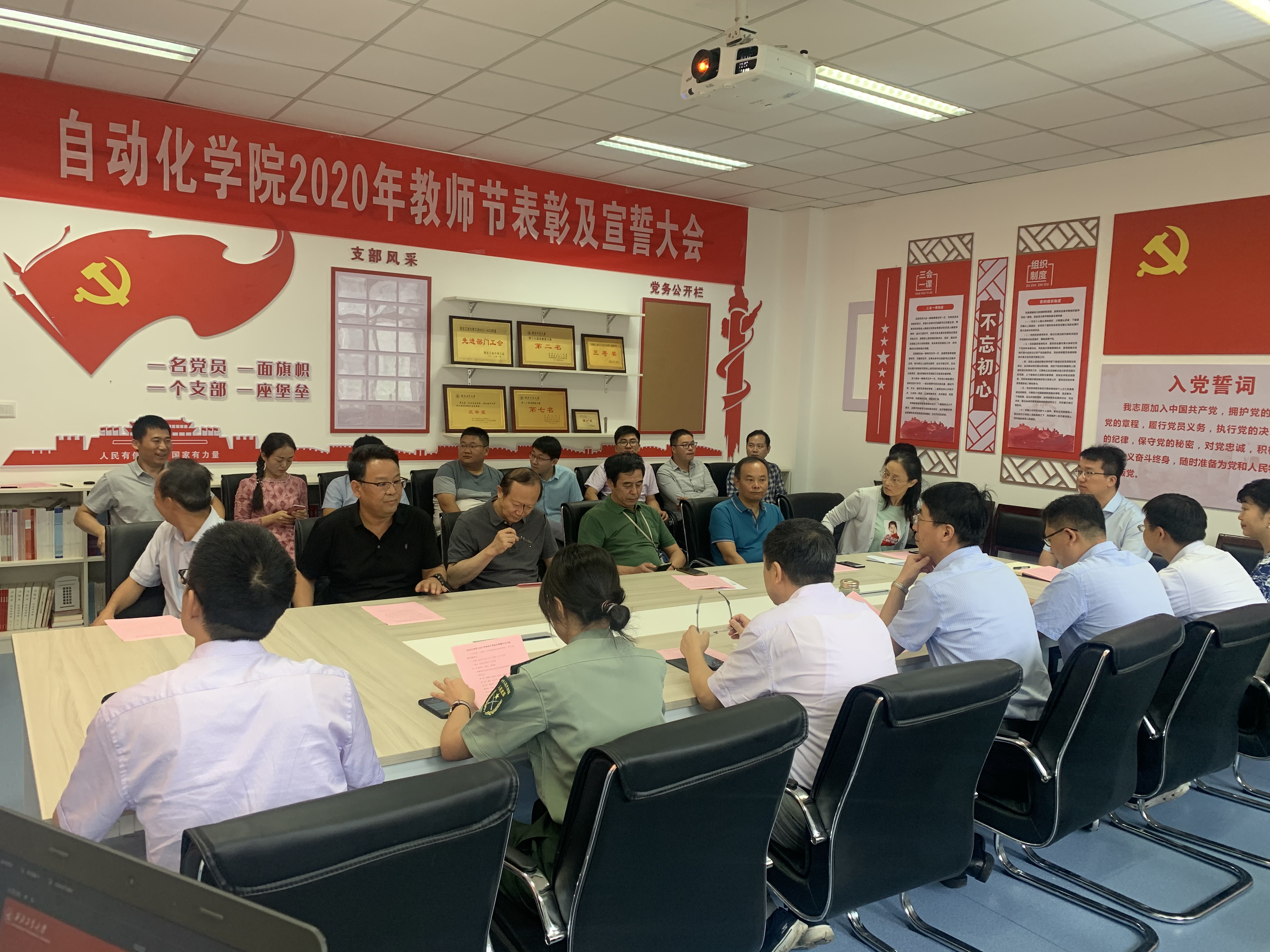 教人为善,师古圣贤。为庆祝第36个教师节,漫画h 于9月10日上午10:00点在学院楼327党员活动室举行了2020年教师节表彰及宣誓大会。学院党委书记潘泉、院长黄攀峰,副书记李伟林、马玥,副院长许斌、刘准钆、王小旭,党委委员王长青,获奖教师及教师代表参加了本次大会。会议由党委副书记李伟林教授主持。