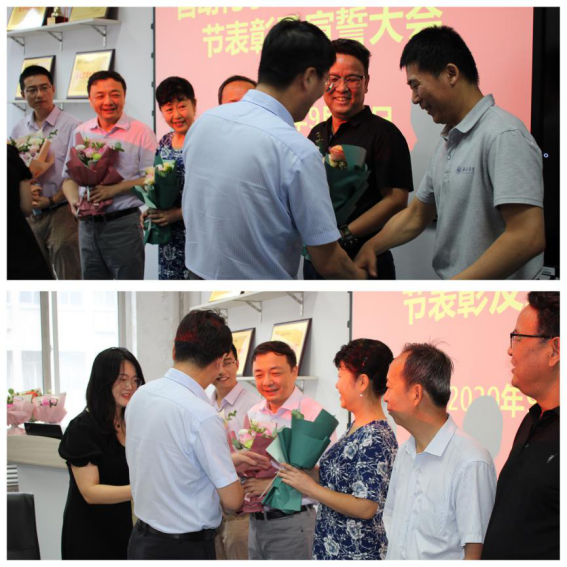 接下来,由学院领导班子成员潘泉、黄攀峰、马玥、许斌、刘准钆、王小旭分别为获奖教师颁奖并与大家合影留念。此次表彰大会有25名教师获奖,其中包括“漫画h 2020年度“十育人”先进个人、2019-2020学年最满意教师、2019-2020年度研究生教育优秀导师、优秀青年教师(吴亚军奖)特等奖、2019-2020年度优秀班主任、优秀辅导员,学生竞赛优秀组织教师等18个奖项。