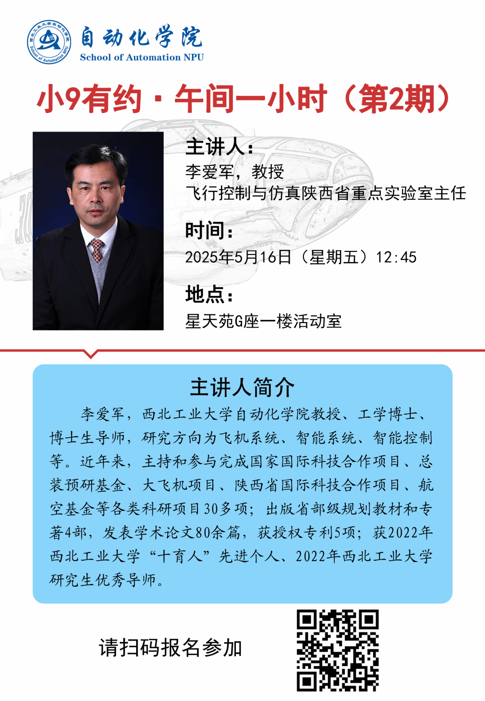 嘉宾:李爱军教授,飞行控制与仿真陕西省重点实验室主任