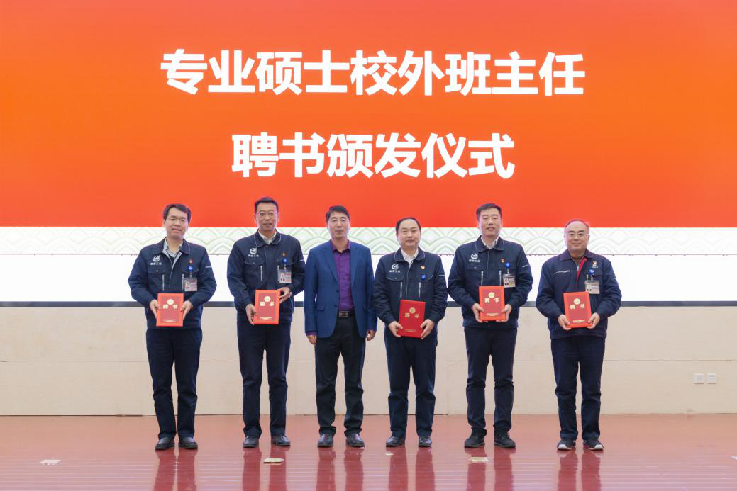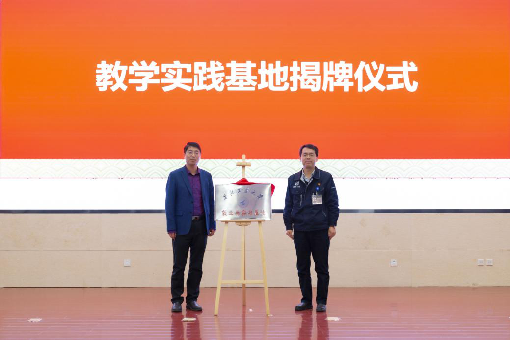 黄攀峰院长和杨卫平董事长共同为就业与实践基地揭牌,并为相互聘任的14名特聘技术专家、5名校外班级导师、19名专业硕士校外导师颁发证书。