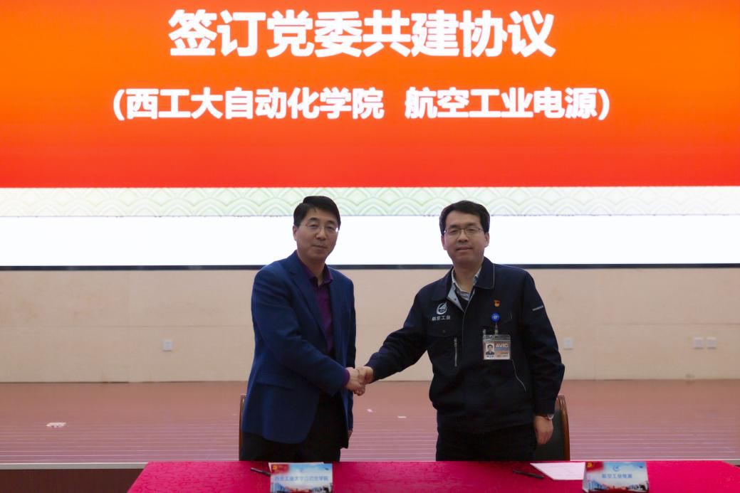 院长黄攀峰和陕西航空电气有限公司党委书记、董事长杨卫平代表双方党委签订共建协议。