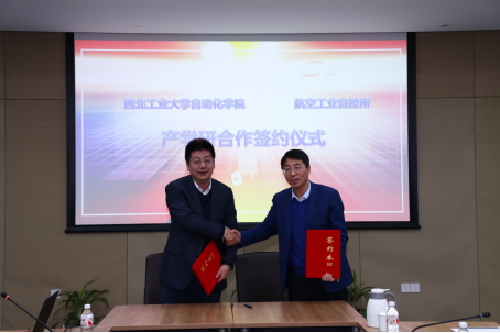 院长黄攀峰和航空工业自控所所长、党委副书记雷宏杰代表双方签订产学研合作协议;双方领导分别为GNC事业部创新中心技术委员会专家、漫画h