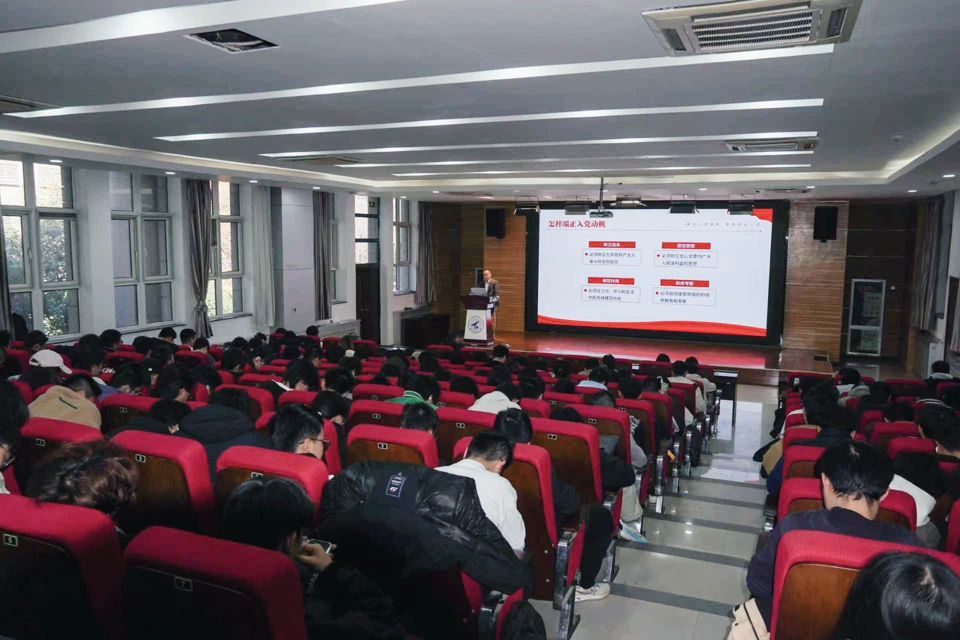 孙华强强调,高校党员选拔事关党的建设根基,端正入党动机是开启大学征程的重要课题,而严格标准、规范程序正是淬炼纯粹初心的“试金石”。他说,入党材料的真实表达、规范格式与严谨态度,绝非形式要求,而是对入党信念的郑重承诺,是端正入党动机的“起点实践”,更要以诚恳态度主动接受党组织的考察,在考察中检验初心、锤炼品格。他寄语学生,要从入学之初就筑牢思想根基,主动深学细悟党的创新理论,深刻领会其时代内涵与实践伟力,将个人成长与国家发展紧密相连;在日常学习中勤学好问、深耕专业,在集体生活中团结同学、主动担当,在科创活动中大胆探索、勇于突破,以实际行动发挥先锋模范作用,在党组织的悉心培养与严格考察中稳步成长,让大学生活在追光逐梦、勇担使命中收获充实与成长。
