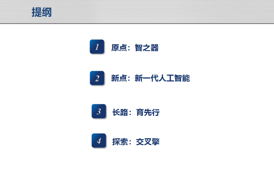 本次报告会,吴飞教授从人工智能起源、人工智能发展、人工智能教学与人才培养,人工智能在药物合成和医学分析领域中的应用等四个方面进行了讲述。报告中,吴飞教授介绍到国务院印发的《新一代人工智能发展规划》中包含的“四大任务”与”五大智能技术形态”。其中“四大任务”是构建科技创新体系;把握技术属性和社会属性高度融合;研发攻关、产品应用和产业培育“三位一体” 推进;支撑科技、经济、社会 发展和国家安全。五大智能技术新方向主要包括:1)大数据智能(从人工知识表达技术到大数据驱动知识学习);2)群体智能(从聚焦研究“个体智能”到基于互联网络的群体智能);3)跨媒体智能(从处理单一类型媒体数据到跨媒体认知、学习和推理);4)混合增强智能(从追求“机器智能”到迈向人机混合的增强智能);5)智能自主系统(从机器人到智能自主系统)。
