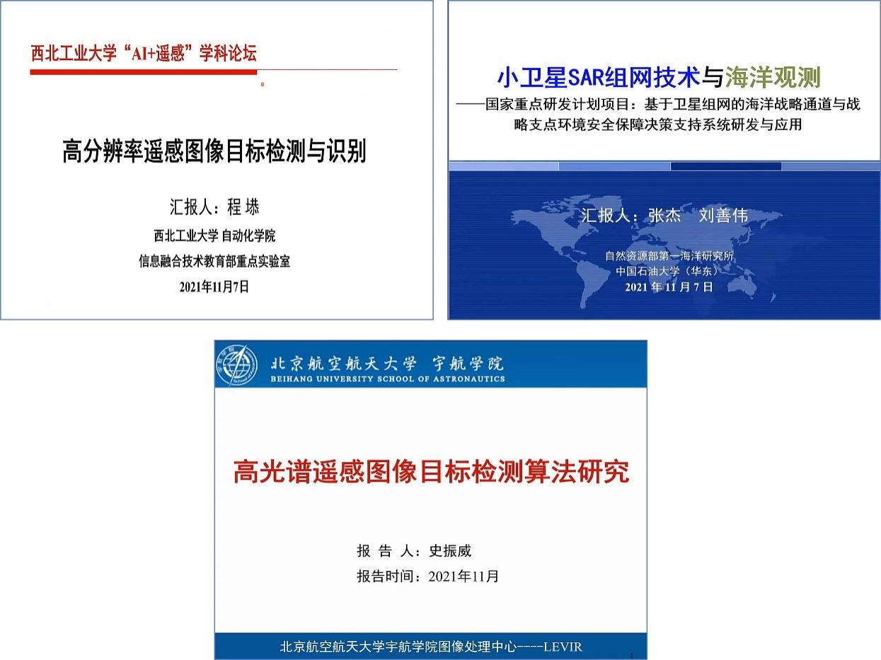 程塨研究员分享了高分辨率遥感图像目标检测与识别,自然资源部第一海洋研究所张杰研究员介绍了小卫星SAR组网技术与海洋观测,北京航空航天大学史振威教授分享了高光谱遥感图像目标检测算法研究。