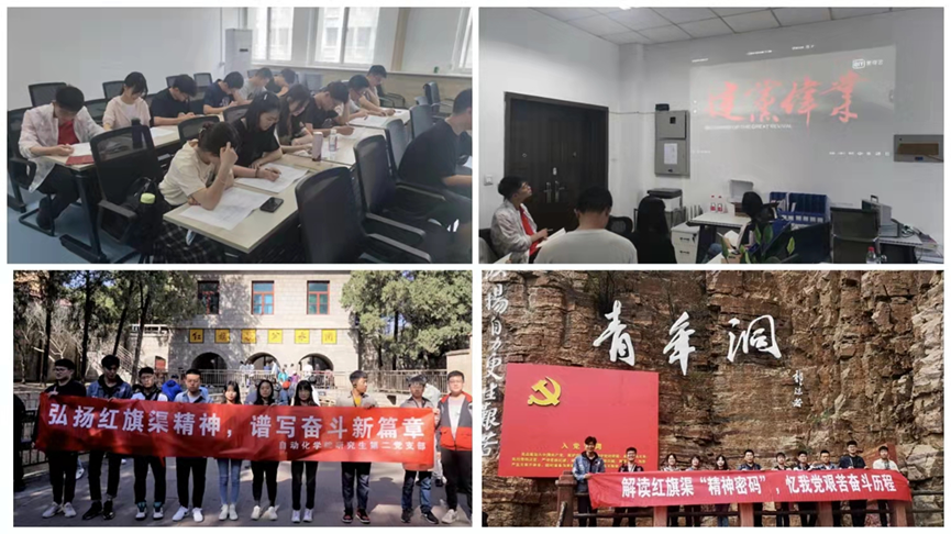 支部将党员教育与各类主题教育及主题活动相结合,广泛开展了交流分享、学习讨论、阅读原著、专题党课、研讨交流、集体观影、实践活动等一系列活动,在学理阐释中增强政治认同。为深入学习贯彻习近平总书记在党史学习教育动员大会上重要讲话精神,支部定期举办“党史知识测试”,深化党员对党史的认知,以测促学、以考验学、以学促知、以学促行,激发党员学习积极性,进一步促进了党员对党的理论知识的学习和理解;支部承办学院“人人讲党史”活动,形成了稳定的宣讲团队,营造了浓厚的活动氛围,并在学院公众号上发表漫画h相关的文章进行宣传,做到以讲促学、以讲促思,有效推动党史学习教育走深走实;依托学院的党建“领航行动”计划,党支部成员赴河南红旗渠开展了为期两天的“传承红色记忆,弘扬红旗渠精神”实践活动,通过专题讲座、实践教学等多种形式帮助学生党员深刻领悟了“自力更生、艰苦创业、团结协作、无私奉献”的红旗渠精神。为进一步促进学生党员对党的理论知识的学习和理解,发挥党员先锋模范作用,支部建立“党员先锋角”,方便支部同志开展交流研讨,集体观影等活动。在暑假期间,组织党员前往广西桂林、贵州遵义、陕西延安等地开展红色教育活动,进一步加强党员教育实效性。