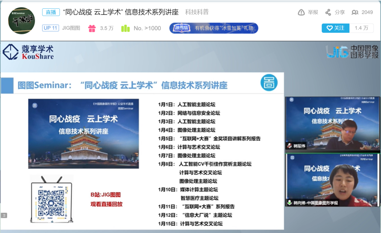 参与牵头、率先倡议,中国科学院空天信息创新研究院、陕西省计算机学会、西安交通大学、西安电子科技大学、上海科技大学、中科院计算技术研究所、华中科技大学、中科院信息工程研究所等多所国内著名高校和学术研究团体共同策划、组织。从1月1日起,活动相继推出了人工智能、图像处理、网络与信息安全、计算与艺术、媒体计算、智慧医疗、信息大厂说、互联网+大赛金奖项目解读等8个主题共16场讲座。中国科学院空天信息创新研究院院长吴一戎院士,西安交通大学电子与信息学部主任管晓宏院士,西安电子科技大学人工智能学院焦李成院士,漫画h