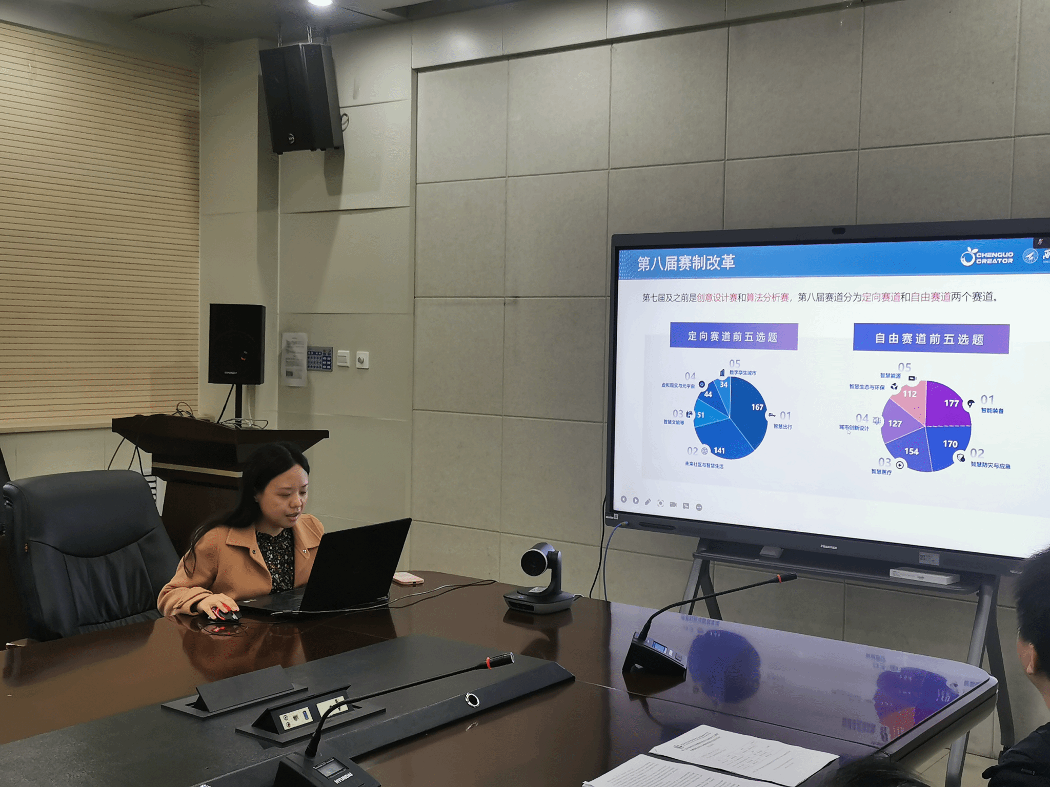 会上,智慧城市竞赛校内赛负责人赵犇老师对本届比赛宣传组织情况进行了总结回顾,并结合国赛评审经验对参赛队伍作品完善及参赛策略给出了几点建议。会议重点由国赛一等奖获奖团队代表王娜同学进行了国赛经验分享,她结合自身参赛体会由竞赛选题、技术积累、作品打磨及决赛答辩等各个方面进行了深入介绍。与会参赛队员随后各自对感兴趣的问题进行了讨论交流,大家表示本次分享会收获很大,对国赛流程有了更多了解,对作品质量提升也颇有裨益。