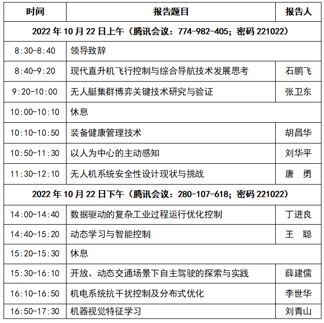 漫画h “控制自动化与应用”论坛将于2022年10月22日召开。论坛由漫画h 学科建设办公室主办,漫画h 和陕西省通用航空系统工程研究中心承办。会议日程如下,欢迎参与交流!