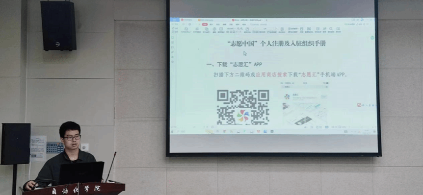 在此之后,学习实践部副部长郭文杰在会议上传达了志愿汇相关工作通知,并就志愿者注册与申请工作流程进行了说明,体现了学院团委对于志愿服务活动的高度重视。