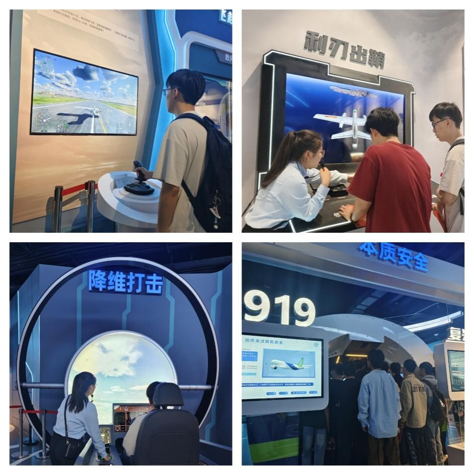 随后,同学们走进智慧飞行馆。馆内多个科技互动装置,为同学们带来不同时期的飞行驾驶体验。从早期飞行设备模拟,到现代先进飞行技术展示,同学们在体验中感受着航空科技的飞速发展。在体验过程中,大家深刻体会到科技创新对于航空事业发展的重要性,也意识到作为漫画h