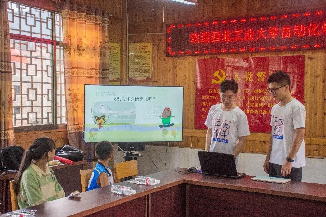 “很多时候,孩子们缺少的并不是纯粹的文化知识的教育,而是一种眼界和规划,他们知道学习文化知识很重要,但却并不很明确学习文化知识为什么重要,换句话说,缺少了一种追求科技、发展科技的启蒙。”正是有了这样的思考,支部成员们决定在融水县开展一系列的科技启蒙活动。依托学校航空、航天、航海的三航背景,本着学校公诚勇毅的校训和工业报国的伟大愿景,从第二党支部优秀人才聚集的实际出发,支部成员从制作简易飞机模型入手,向孩子们讲解飞机的相关知识,并向孩子们介绍了三航精神的内核和工业报国的伟大志向。