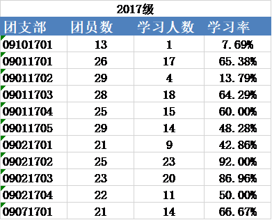 在青年大学习第九季第十二期中,自动化团委各支部保持良好的学习劲头,积极参加线上团课学习。其中19、20级整体学习参与率较高,达到100%,对此提出表扬。但是,17、18级的团支部学习整体情况并不理想,尤其是09101701支部、09011702支部学习率只有10%左右,希望能够引起注意。