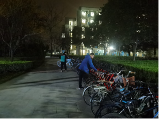 志愿者们集中对教学楼、星天苑、数字化大楼、图书馆摆放的自行车进行规整,将文明摆放到位。
