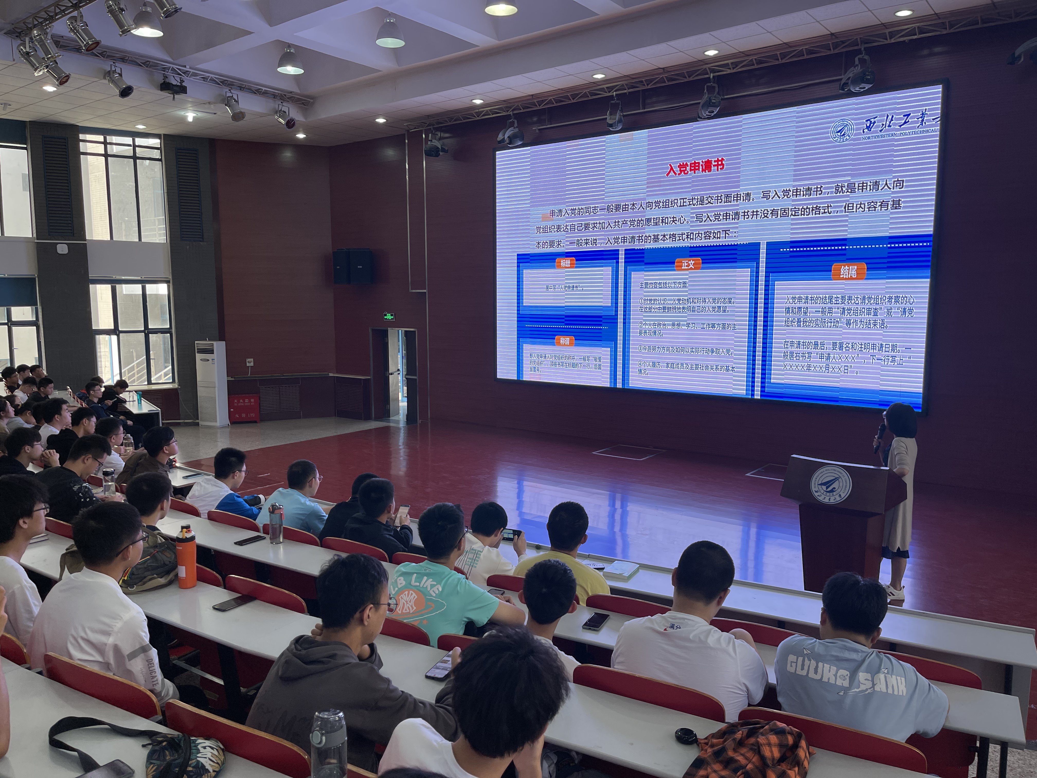 9月7日上午,漫画h 党委副书记马玥在教西D100教室为2021级自动化类新生开展入党启蒙教育。