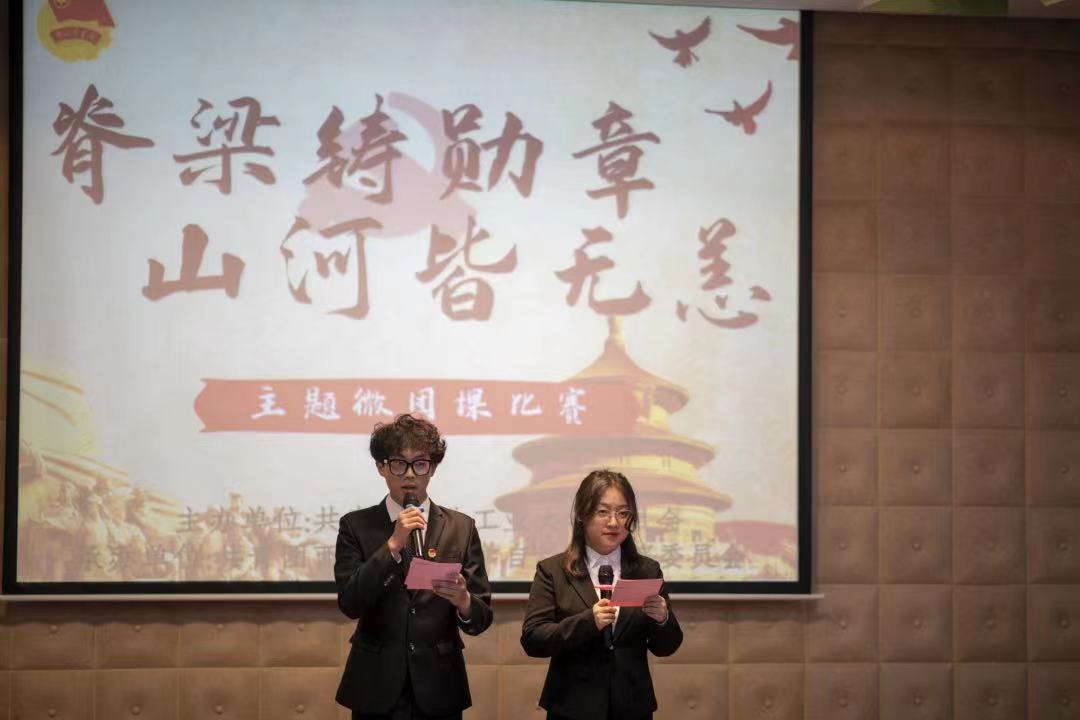 报告厅举行“脊梁铸勋章,山河皆无恙”主题微团课比赛的决赛。此次比赛以线上直播的形式进行,到场的评委嘉宾有:漫画h
