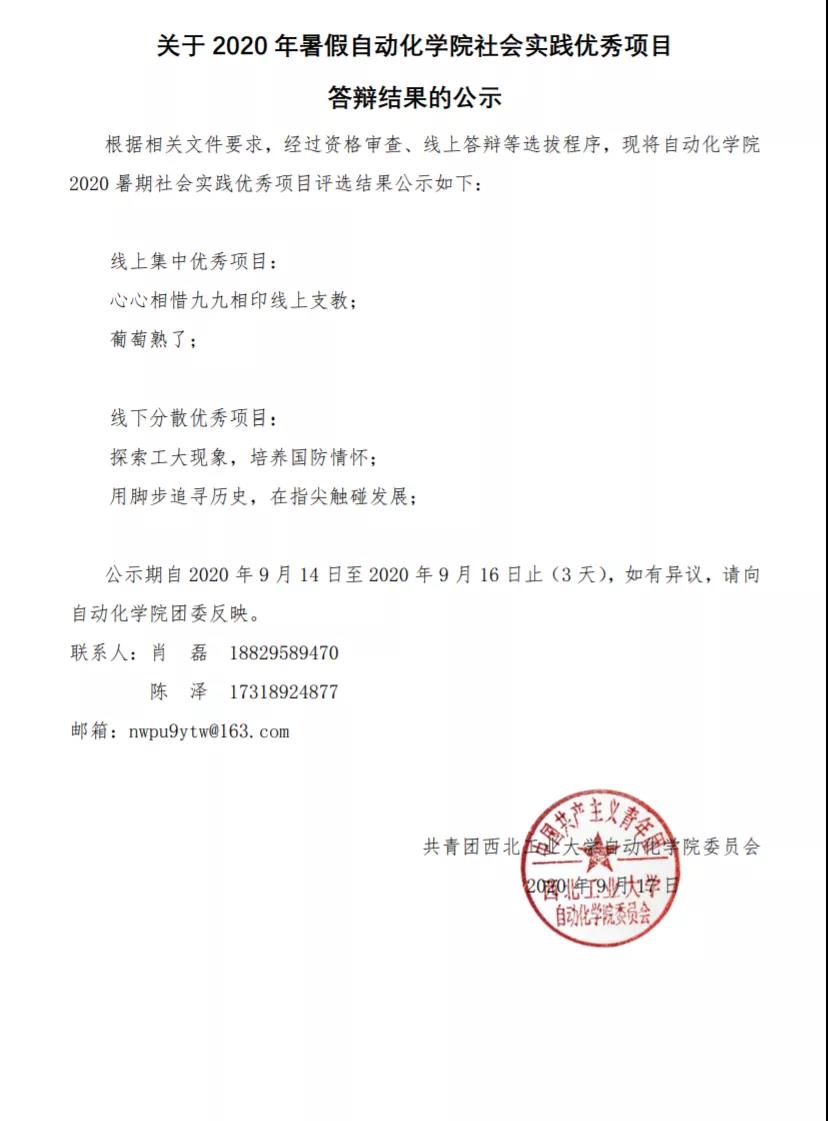 关于 2020 年暑假漫画h 社会实践优秀项目 答辩结果的公示